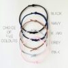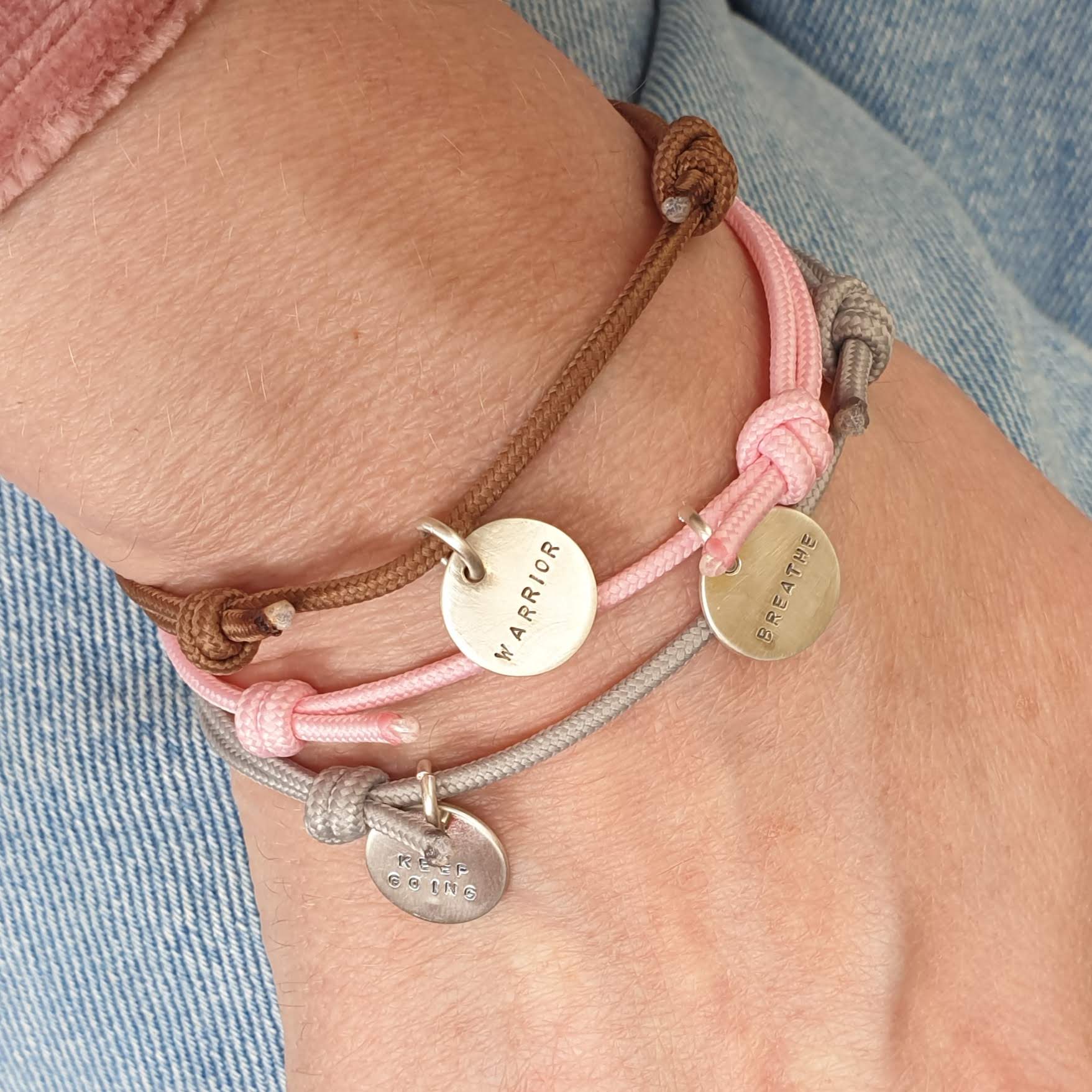 These versatile, strong and waterproof sailing ropes are the perfect way to wear your favourite Mantra. Just pop it on your wrist and any time you need a reminder, just read the Mantra on the brushed finish sterling silver disc. Five gorgeous colours to choose from! Please be sure to enter your personalisation correctly as amendments cannot be made once the hammer has struck. Don’t forget to check out our wonderful Personalised Collection for more!